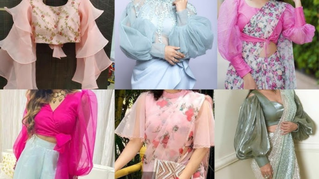 2. शीयर ऑर्गेंजा ब्लाउज़: सॉफ्ट और रोमांटिक अपील
