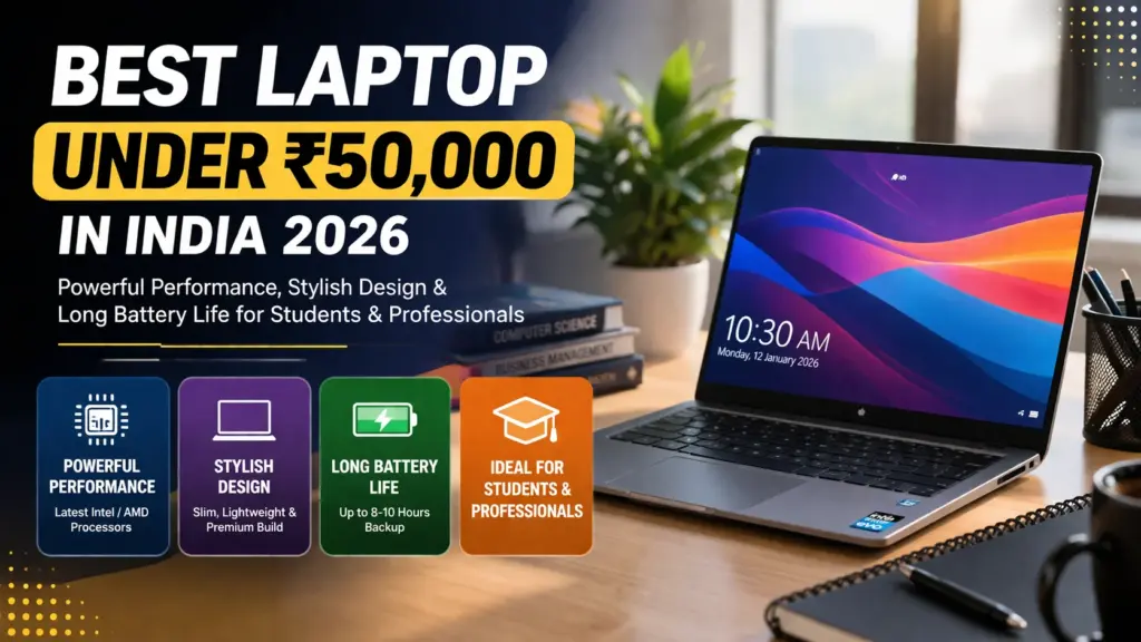 This article covers the best laptops under 50000 in India for 2026 with a clear comparison table and detailed insights. All recommended models come with at least 16GB RAM and SSD storage, making them future-ready for everyday use.