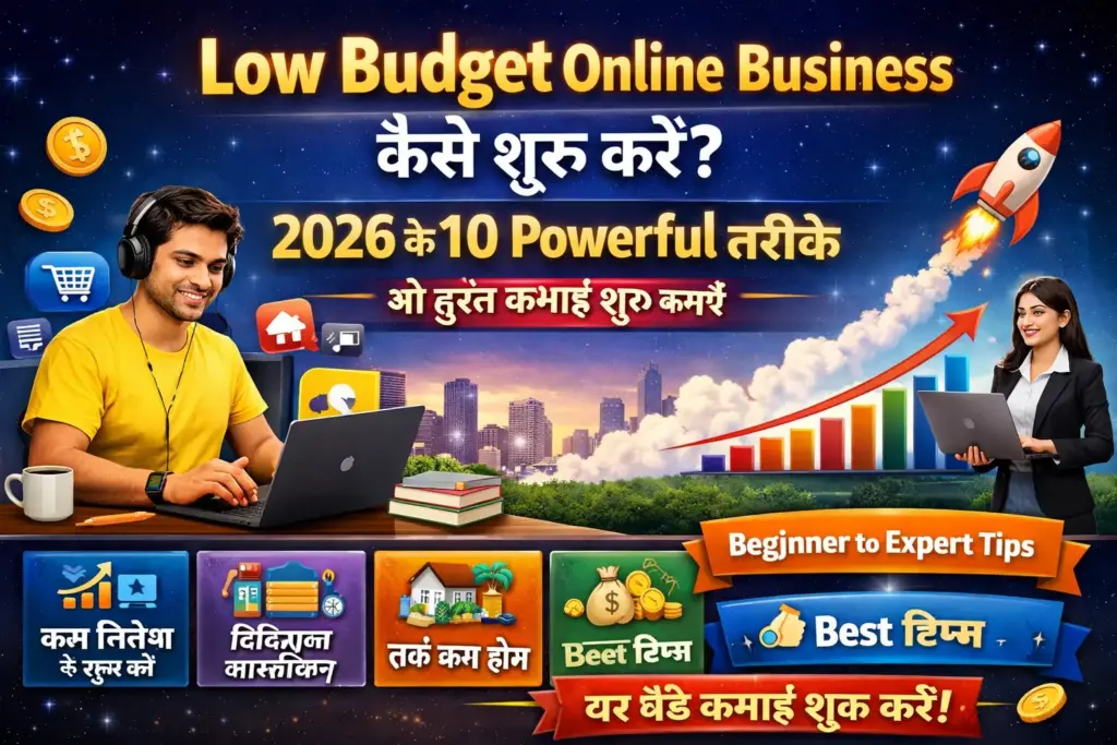 Low budget Online Business शुरू करना चाहते हैं? जानें 2026 के 10 powerful तरीके जिनसे आप कम investment में घर बैठे online earning शुरू कर सकते हैं। Best ideas, tips और proven strategies के साथ पूरी guide!
