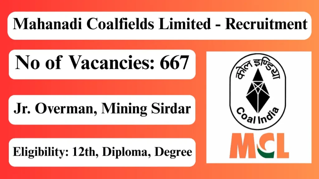Mahanadi Coalfields MCL Recruitment 2026 – Apply Online for 667 Jr.Overman, Mining Sirdar, Technician and More Posts