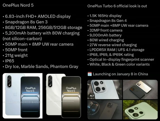OnePlus Nord 5 और Nord 6 के मुख्य स्पेसिफिकेशन्स